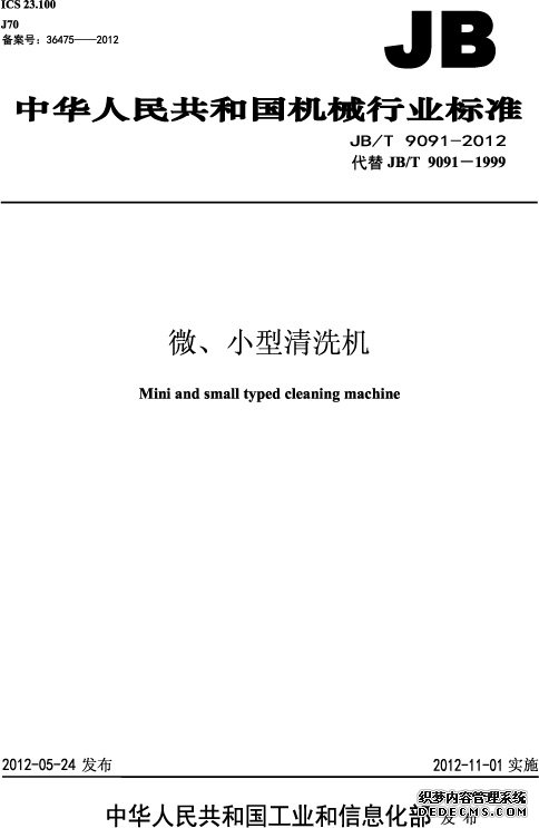 熊貓通用機械集團有限公司和合肥通用機械研究所(即中國通用機械研究院)起草了《微、小型清洗機》的行業標準,并在2012年11月1日正式開始實施。該 標準涉及了最大壓力40MPa,最大90L/min的大部分常見的高壓清洗機,也可以說就是高壓清洗機的行業標準。